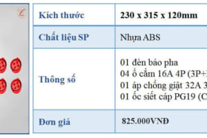 Hộp nguồn 3 pha 4 ổ 16A kèm áp chống giật